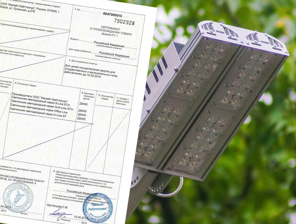 В апреле 2018 года компания «Имлайт-Лайттехник» одной из первых в Кирове получила данный Сертификат. Документ выдан на серии светильников S-Line STm, Arch-Line STm, Office Line, In-Line ST и дает право на участие в аукционах и тендерах, проводимых государственными или муниципальными заказчиками и бюджетными учреждениями на приобретение указанного оборудования.