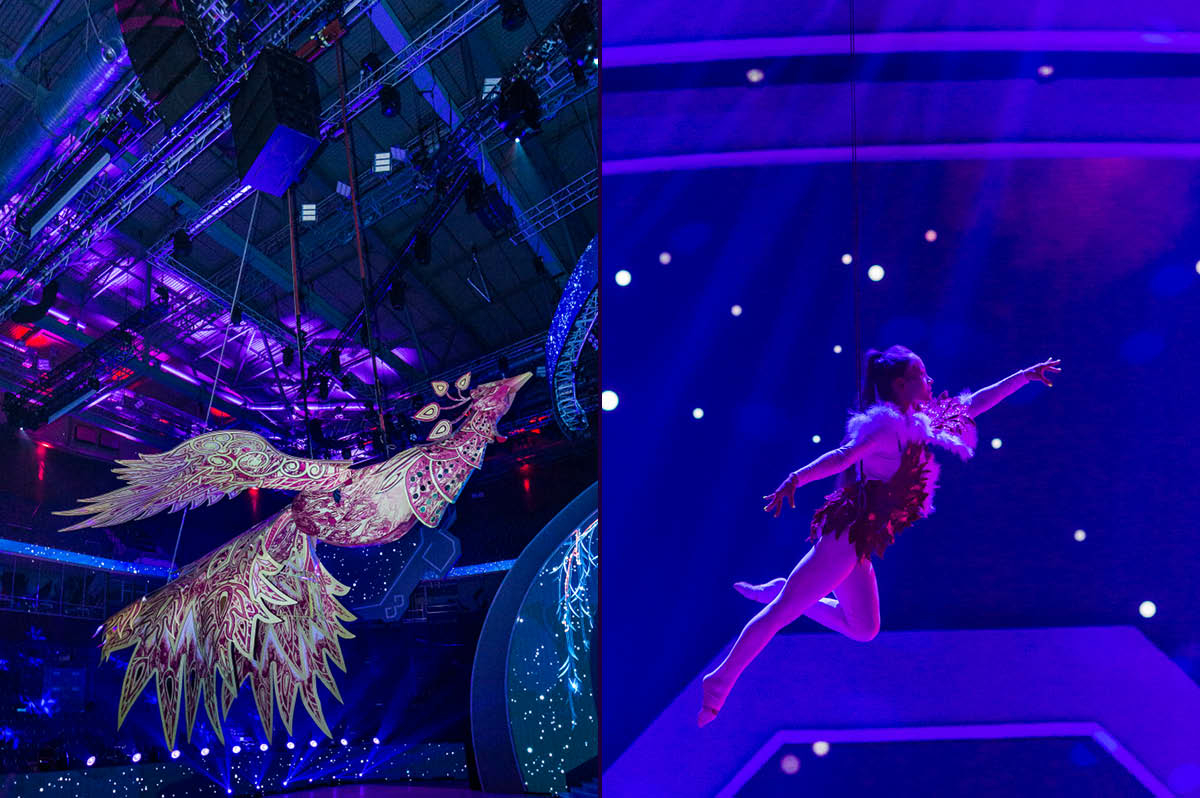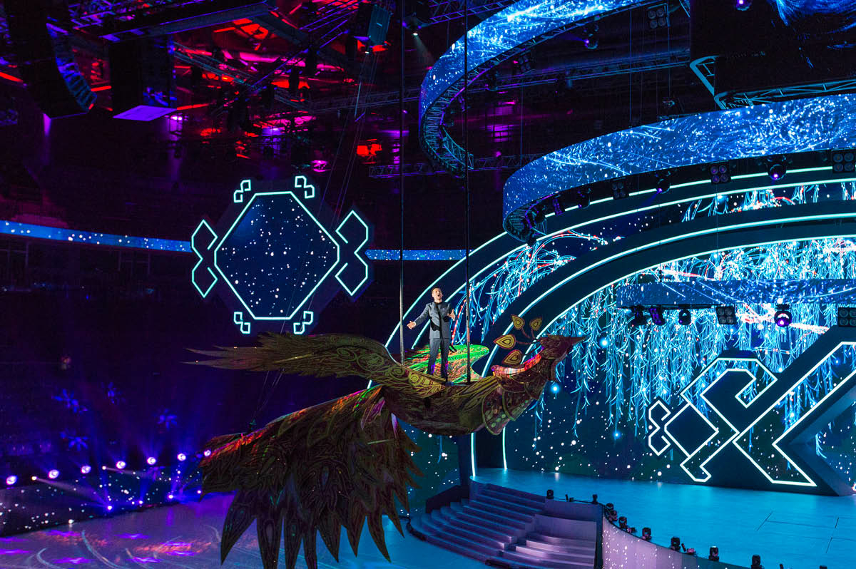 Популярность кинематики, движения во время шоу, с каждым годом только растет. Большие режиссеры считают должным присутствие кинематических конструкций в общем техническом комплексе сценической площадки. Никого уже не удивляет, что во время шоу что-то передвигается, поднимается и опускается – это норма. И мы должны соответствовать этой норме, современным стандартам шоу-индустрии. Моторизированные дороги с компьютерным управлением, которые мы разработали с отделом механического оборудования компании «Имлайт», универсальны. Они могут открывать светодиодные экраны по типу ширмы и шторы или возить птицу с человеком, как здесь в «Уфа-Арене», но в принципе способны перемещать (и делать это безопасно) что угодно – да хоть автомобиль, если режиссер шоу этого захочет. Собственно, это был главный пункт нашего техзадания: легкое перемещение на двух-трех каретках груза весом до нескольких тонн. Отмечу, что каретка – тоже разработка нашего производства – выполнена на очень высоком техническом уровне. Смотришь и понимаешь, что компания за эти годы очень выросла, в том числе и в подходе к производству.
