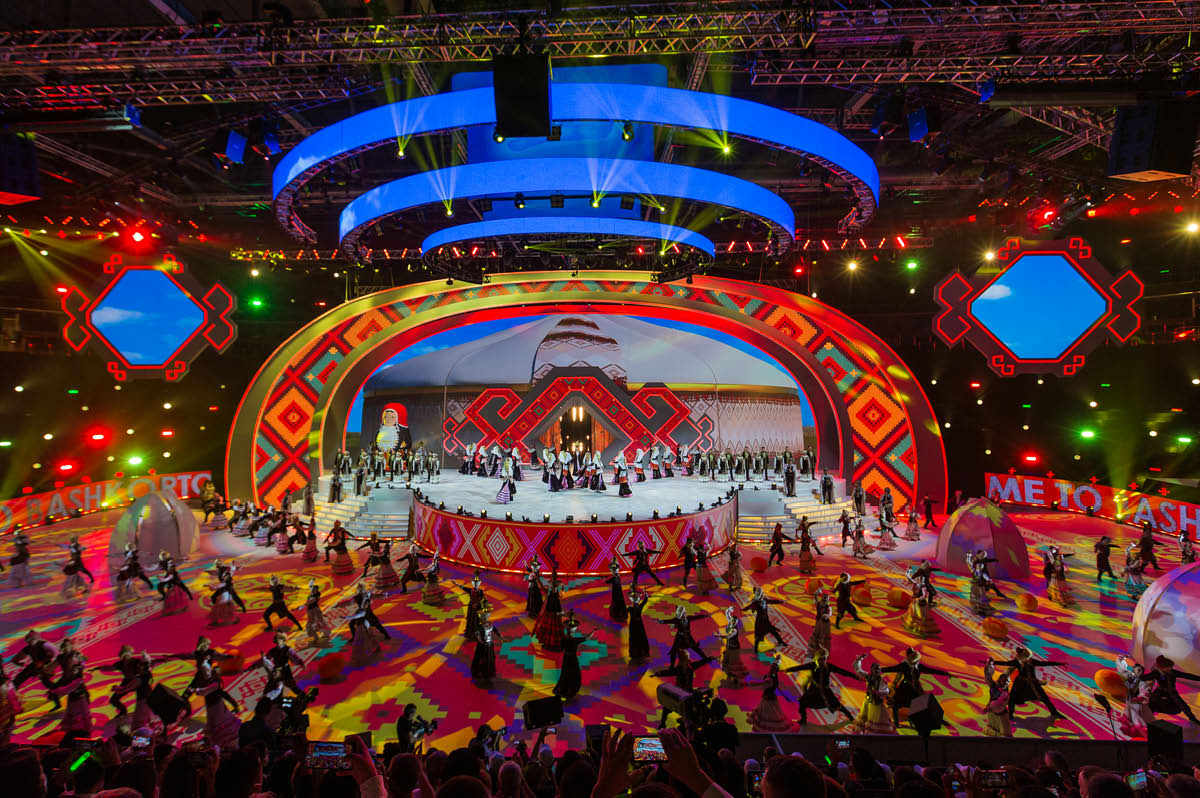 На церемонии открытия «Фольклориады-2021» в «Уфа-Арене» состоялась техническая премьера нового комплекта механического оборудования производства ТМ IMLIGHT. Дорога с моторизированным приводом горизонтального перемещения была разработана по спецзаказу и пополнила парк верхней машинерии, имеющейся сегодня в распоряжении IMLIGHT SHOW PRODUCTION.