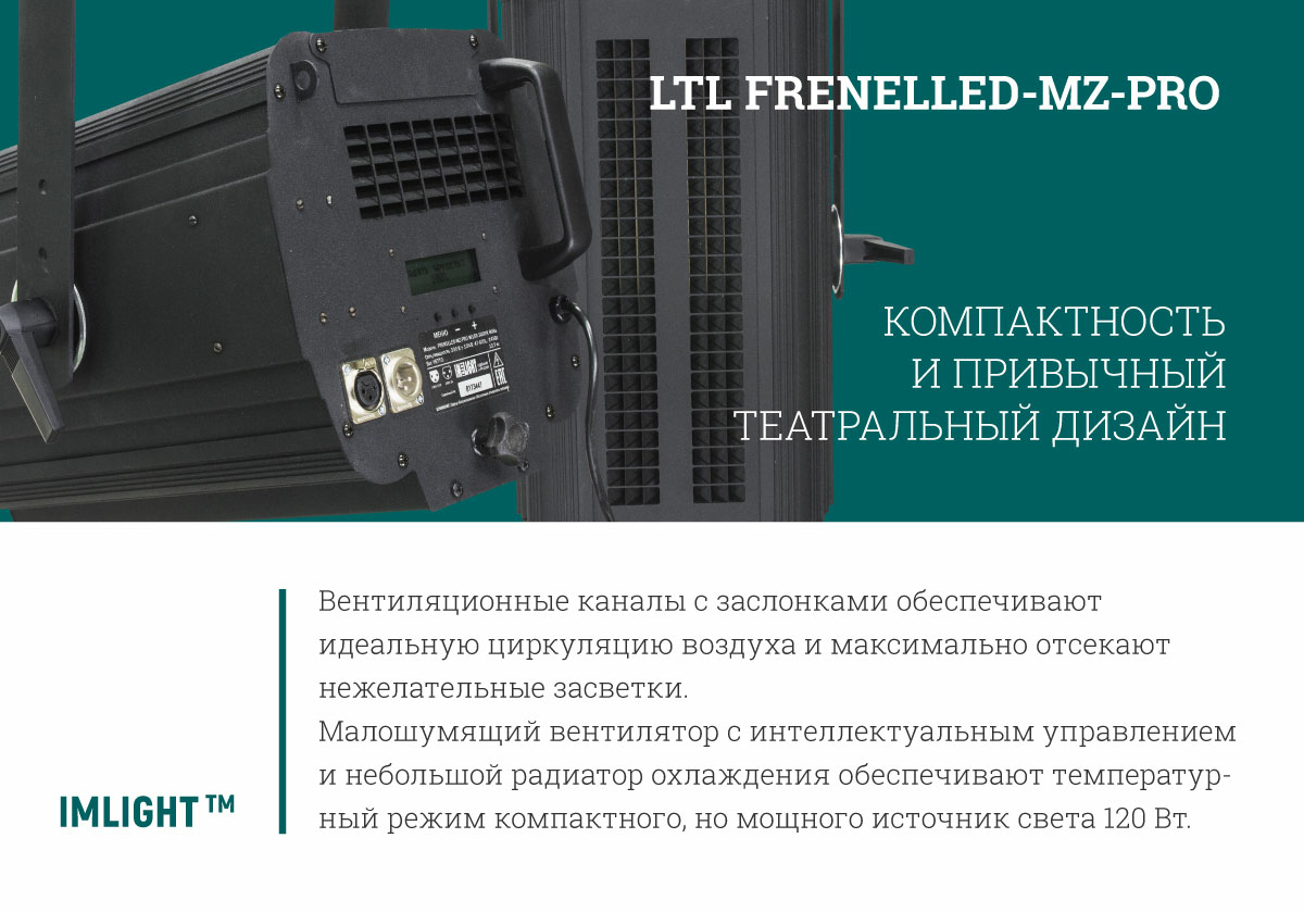 Приборы серий LTL PROFILED-PRO, LTL FRENELLED-MZ-PRO, LTL COLOR PAR также оснащены малошумящими вентиляторами, которые включаются по автоматической программе. Эти приборы отличаются высокой яркостью, бесшумностью работы и длительным сроком службы светодиодов, который обеспечивается за счет соблюдения правильного температурного режима.