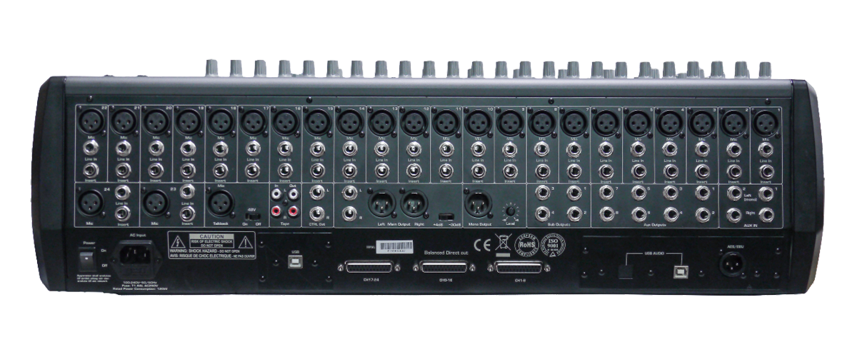 Интересный факт – с технологической стороны, если рассматривать микропроцессорную часть, D-MIX 24 отнюдь не является устаревшим прибором. Наоборот, многие популярные производители только приступили к внедрению ряда процессорных решений в свои товары! Хотя некоторые идеи, например, применение множественного числа вычислительных процессоров, в данном ценовом сегменте вообще не повторяются. ЧИПы Analog Devices имеют разрядность 32bit с плавающей запятой. Частота сэмплирования ЦАП\АЦП – 96 кГц. Такие же характеристики присущи большинству моделей, востребованных на рынке.