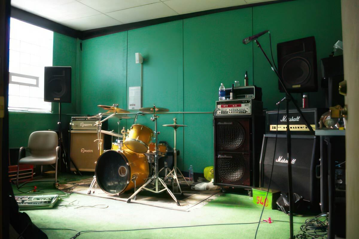 Для репетиций привычного состава рок-группы из 3-5 человек требуется комната площадью от 30 квадратных метров, что является минимально достаточным метражом. Вообще, для громкой метал-банды желательно помещение побольше, так как использование акустической ударной установки подразумевает необходимость немалого звукового давления остальных инструментов и голоса. Если акустические системы и барабаны будут находиться в непосредственной близости друг к другу, то органы слуха музыкантов окажутся под большой угрозой. В принципе, эта проблема решается использованием берушей - поначалу это вызывает некий дискомфорт, но через пару репетиций данный вариант принимается за вполне рабочий.