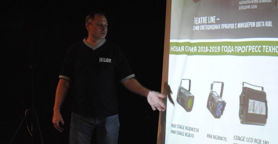 Программа пятичасового семинара была подготовлена на основе вопросов и пожеланий самих работников театров, то есть фактически составлена по адресным запросам. Среди ключевых — актуальные вопросы, связанные с переоснащением учреждений культуры. Как подготовиться к реконструкции? Каков современный стандарт качества в технологии светового оформления? Какие методики выбора осветительного оборудования, исходя из задач и бюджета, существуют сегодня? Но главный упор был сделан не на лекционную, а на практическую часть – специалисты компании «Имлайт» показали в действии работу топовых моделей CLAY PAKY серии AXCOR и последние разработки театральной серии светодиодных прожекторов TM IMLIGHT. Участники семинара протестировали работу оборудования в сценических условиях, «прогнав» каждый из приборов по заявленным производителем характеристикам.