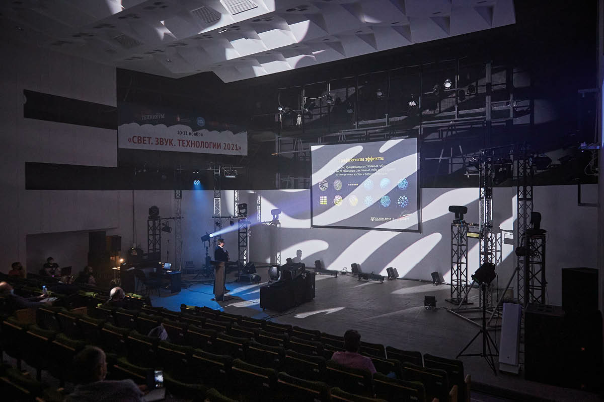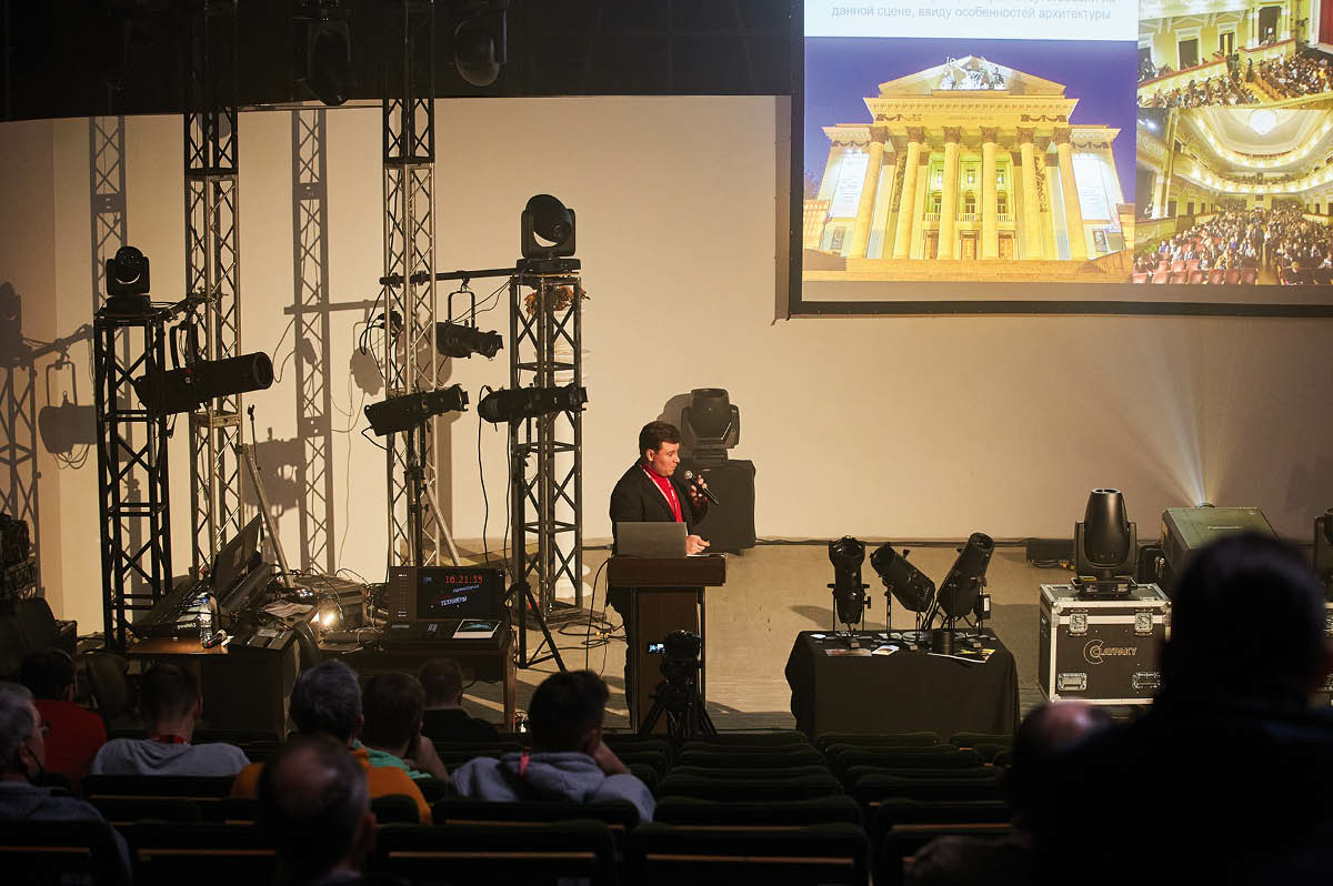 Информационный блок для профессионалов сферы Prolight продемонстрировал не только разнообразную палитру современных решений для сценических площадок (и бюджетов) любого уровня, но и дал представление, как прийти к нужному результату в проектировании системы постановочного освещения.
