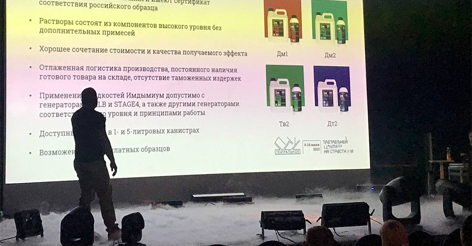 Главное событие в рамках образовательного проекта в направлении специальных эффектов - это, конечно, эксклюзивная демонстрация прототипа конфетти-машины ТМ ИМЛАЙТ. В конце дня в живом общении со специалистами мы были рады услышать отзывы и предложения. Работа над прототипом продолжается, и на выставке Light + Audio Tec 2023 мы планируем презентовать уже рабочий образец. Кроме этого, слушатели смогли на практике познакомиться с продукцией ТМ ИМЛАЙТ ещё одного направления – расходными жидкостями для генераторов спецэффектов. Весь день за создание дымки отвечала качественная жидкость для генераторов тумана Тв2, сцену ровным слоем покрывал тяжелый дым Дт2, а для демонстрации плотности и стойкости облака дыма над аудиторией был пущен залп из классической дым-машины, заправленной нашей жидкостью Дм2. Вторая часть выступления была посвящена текущему положению дистрибуции товаров из стран Запада и КНР. Мы показали новинки, которые уже есть на нашем складе – генераторы тумана, снега, ветра, а также рассказали о приборах, которыми планируем удивлять на предстоящей выставке. Например, сверхмощной и высокотехнологичной дым-машиной в корпусе с защитой IP65. Мы постарались сделать презентацию максимально полезной - между собственно демонстрацией работы оборудования активно обсуждались вопросы эксплуатации и обслуживания.