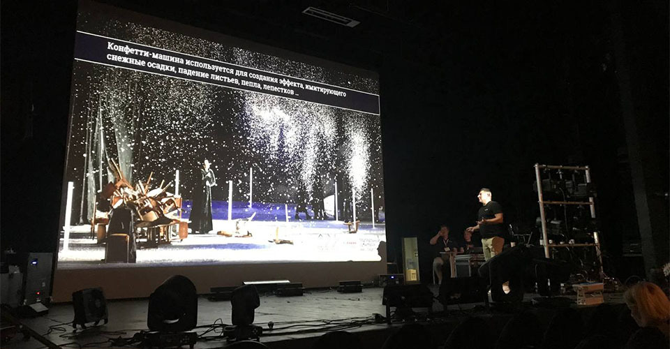 Параллельно участников «Театрального ПТУ» знакомили с арсеналом технических и технологических инструментов, которыми может и должен располагать современный театр. Компания «Имлайт» не в первый раз выступила партнером учебной сессии и подготовила для слушателей максимально полезный и сбалансированный контент из живых презентаций продуктов и теоретической части, основанной на опыте многолетнего проектирования технологических комплексов сцены.