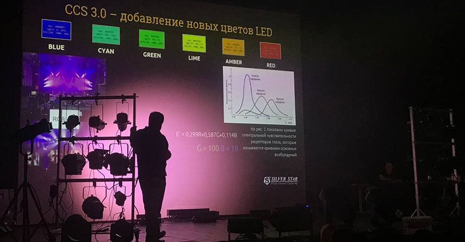 Silver Star представлен на рынке России больше 20 лет, и многие участники «Театрального ПТУ» уже были знакомы с некоторыми моделями этого производителя. Было приятно слышать в кулуарах, как некоторые приборы Silver Star отработали на объектах по 10 и более лет (и в том числе нотки разочарования, что кто-то купил no-nameприборы, вместо Silver Star, которые совсем не отвечают требованиям и не идут ни в какое сравнение с характеристиками представленных моделей). Основная задача была познакомить пользователей с широким ассортиментом профессионального света именно для театра, представить новинки этого года, расшифровать особенности технологий, специальные возможности и собственные know how. Так, мы представили технологию CCS 3.0: Color Consistency system («Система согласованности цвета», версия 3), о которой рассказывали не раз ранее, но для многих это было что-то новое. Также было представлено большое разнообразие Френель-прожекторов - около 10 моделей «теплых», «холодных», 5- и 6-цветных вариаций, с ручным и моторизированным зумом, с мощностью LED-источников от 40 до 250 Вт, а также с возможностью управления напрямую от диммерных систем. В этой «обойме» - пять видов профильных прожекторов 100-300 Вт с аналогичными характеристиками, среди которых хиты этого года с очень высокими показателями индексов цветопередачи. Новые модели студийных заливных светильников PLANO 300 HEX, AuroCYC 180 Hex IP и E-LITE приятно удивили своей световой мощностью и возможностями управления цветом. Демонстрация в большом зале прошла наиболее показательно и дала представление, как их использовать в аналогичных инсталляциях. Представили новые модели WASH «поворотных голов» PLUTO8000WBX и NEPTUNE 300 WBS - приборы с RGBL-синтезом цвета, который повышает качество цветопередачи и световую мощность «белого», очень тихой и быстрой работой PAN/TILT. Из профильных «поворотных SPOT-голов» показали PLUTO1400 PROFILE (HI-CRI) и NEPTUNE 700 PROFILE, что однозначно оживило аудиторию. Одной из задач было показать, что приборы IP65 для работы в театрах иногда лучше стандартных – в режиме STUDIO можно значительно снизить уровень шума при незначительном снижении яркости (15-20%) и главное - приборы защищены от пыли и грязи, а это минимизация сервисного обслуживания и чистки внутренних частей от пыли, следов работы дым-машин и хейзеров, что существенно продлевает срок работы. При включении вентиляторов в режим STUDIO уровень шума снижается до 39 дБ, что тише большинства ламповых аналогов. Ну и напоследок – всем «зашли» реальные сравнения LED-приборов с ламповыми. 40 Вт FREZNO mini SW светил аналогично 650 Вт лампе, а рядом с Robert Juliat 310 HPС 1200 Вт могли спокойно сравниться и 100 Вт, и 150 Вт Френель-светильники Silver Star. Сравнение ETC Source Four 26, Black CE (750 Вт) и ECLIPSE 250SD было явно в пользу последнего - значительная разница в световой мощности была видна и без измерений. В целом участники получили развернутое представление по модельному ряду световых приборов Silver Star, их возможностям и стоимости. Мы получили много вопросов, реальный интерес к продукции и позитивную обратную связь.