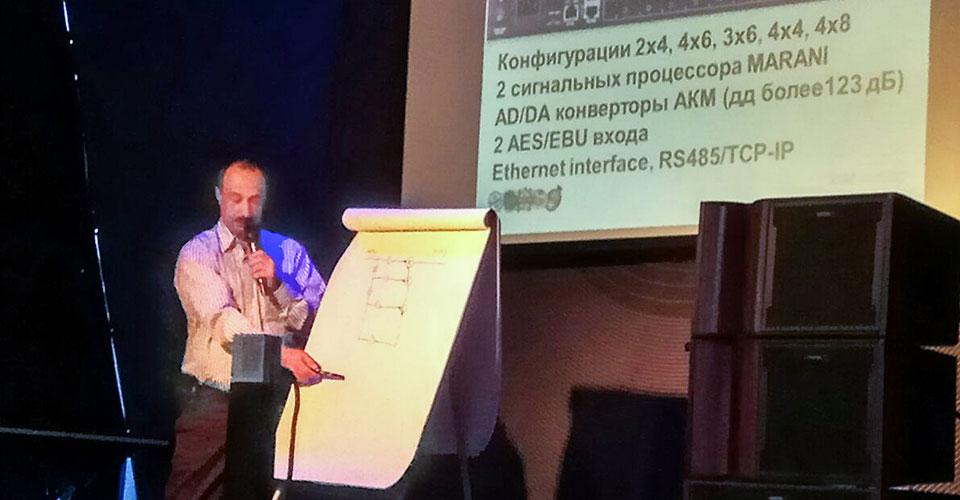 Специальным приглашённым гостем на мероприятии стал один из основоположников концепции внедрения микропроцессорной техники в звукоусилительные и управляющие приборы – Микеле Марани (основатель компании MARANI). В ходе форума Микеле не только рассказал о своем бизнесе и DSP-процессорах, но и показал, как за 15 минут заставить акустический комплект звучать по-новому. Приятным сюрпризом для всех участников стало исполнение итальянским гостем прекрасной музыкальной партии на электропиано.