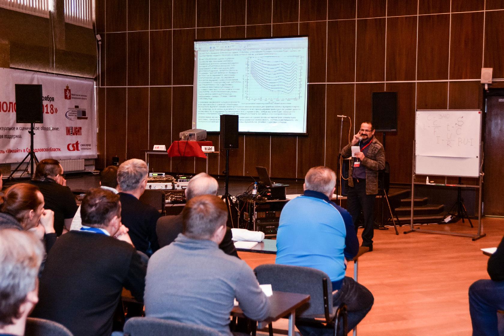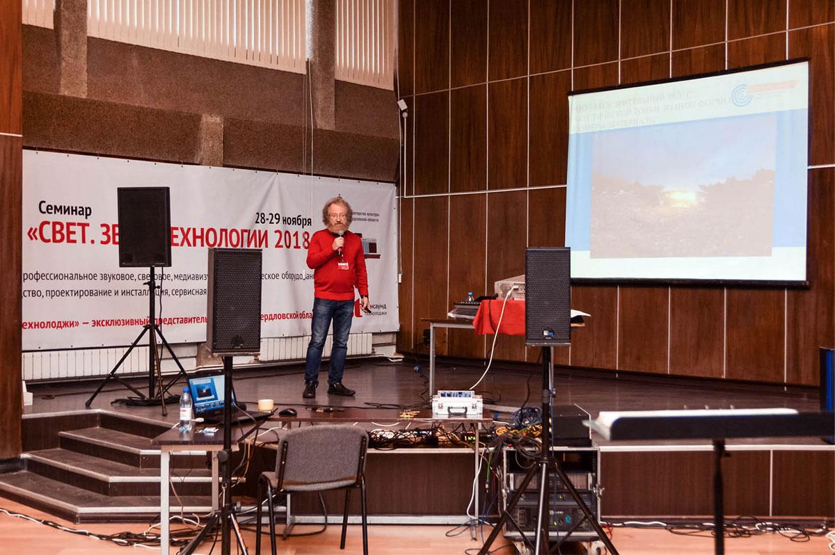 Второй день работы семинара-практикума «Свет. Звук. Технологии 2018» в «звуковой» аудитории открыл Анатолий Лившиц, кандидат технических наук, президент ГК «Акустик Групп».