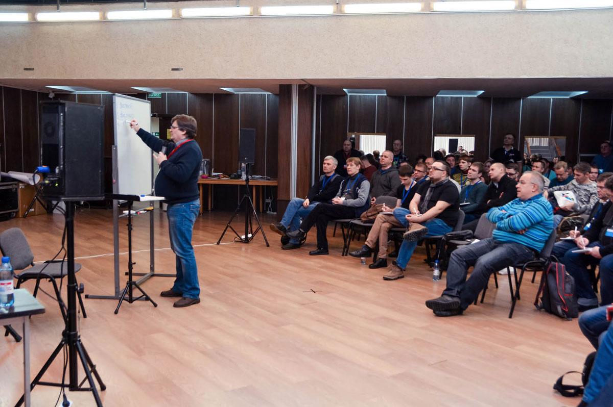 В этом году от участников семинара было много вопросов, связанных с работой в акустически неблагополучных помещениях. Иными словами — как настроить то немногое оборудование, чтобы получить приличную звуковую картинку. Так что существенная часть лекции была посвящена именно практическим решениям насущных проблем
