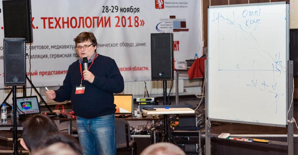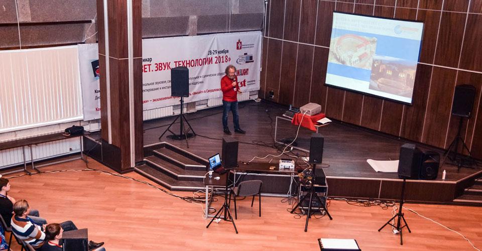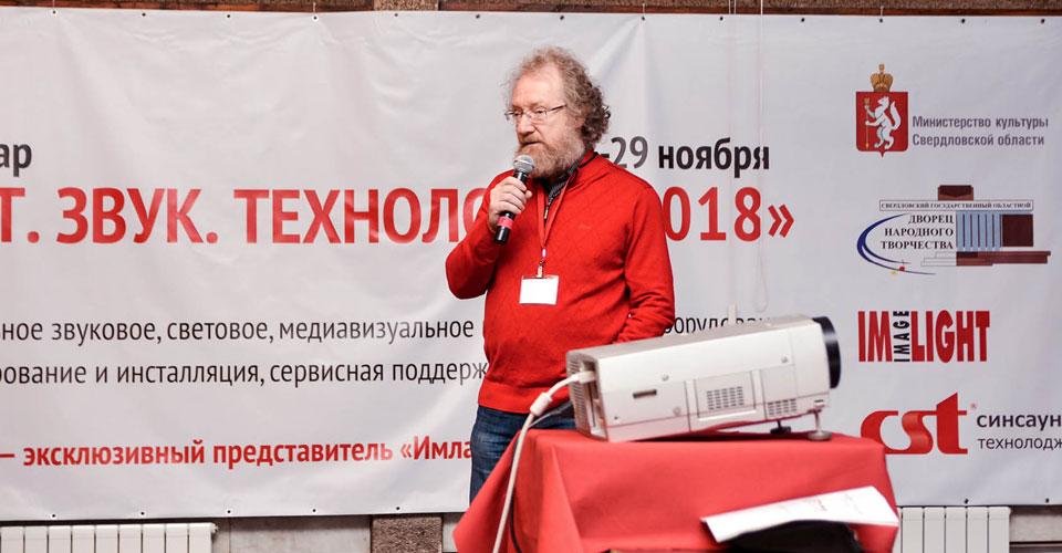 Второй день работы семинара-практикума «Свет. Звук. Технологии 2018» в «звуковой» аудитории открыл Анатолий Лившиц, кандидат технических наук, президент ГК «Акустик Групп».