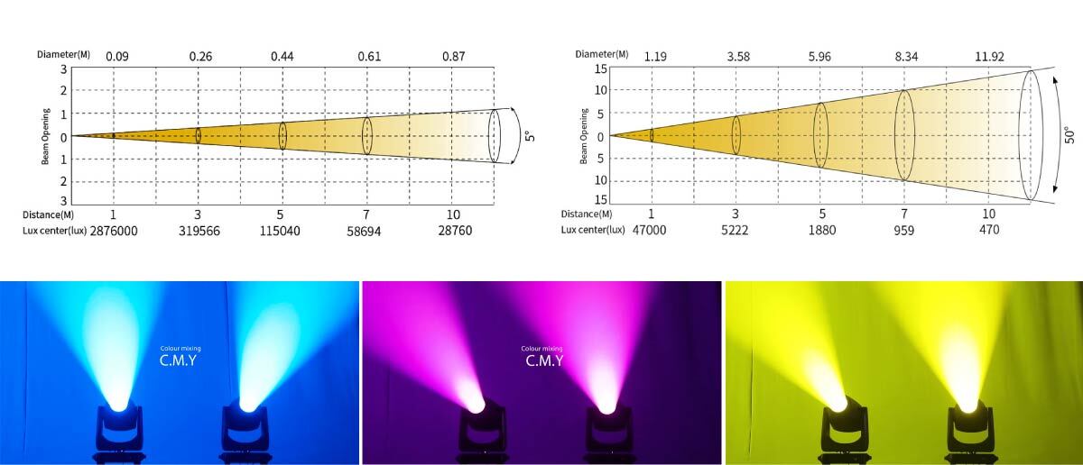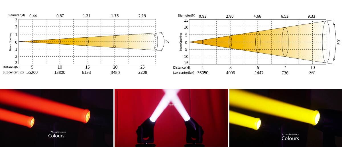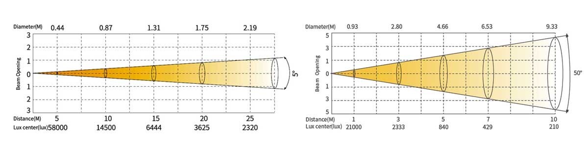 Освещенность на 5 м равна 58000 люкс, что сопоставимо с работой лучших аналогов на лампах 700-1200 Вт.