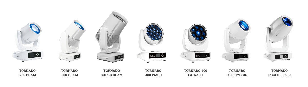 • Всепогодные «поворотные головы» Tornado различных типов. Предназначены для создания уличных тематических шоу и проекций для стационарных инсталляций. PROFILE SPOT-приборы, гибридные SPOT/BEAM «головы», LED и лазерные BEAM движущиеся прожекторы, которые могут использоваться как «зенитки», WASH – заливные многофункциональные «головы». Мощность источника - от 200 до 1000 Вт, назначение и функционал весьма разнообразны и подходят для любых инсталляций.