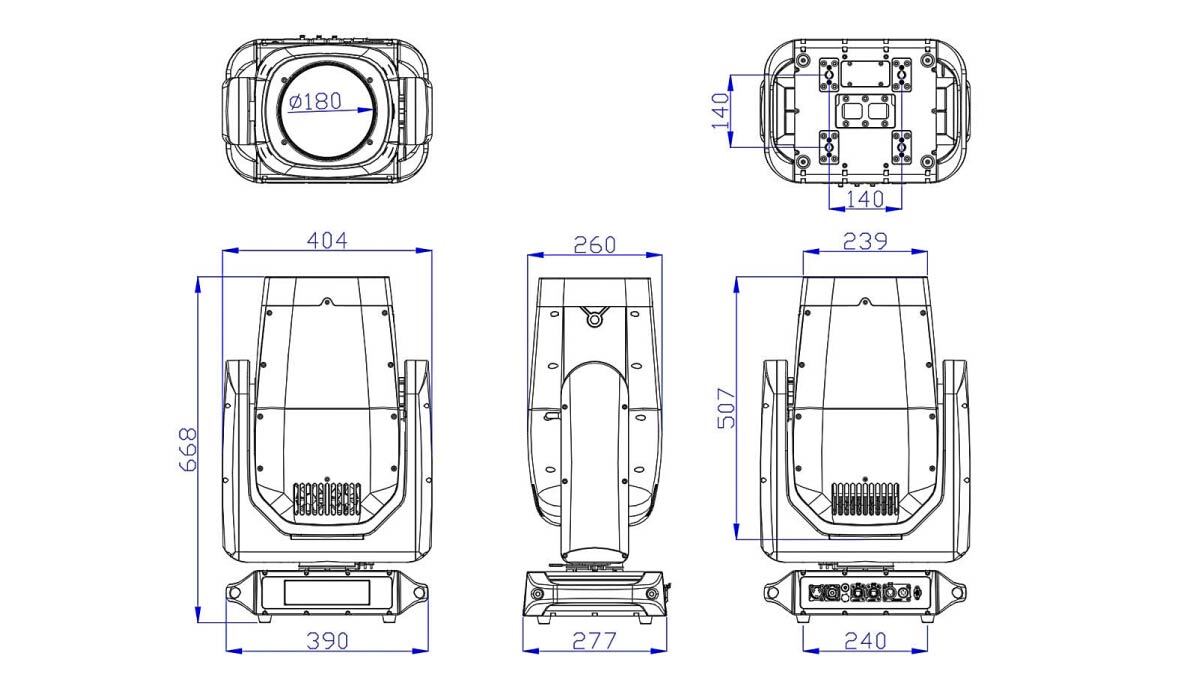 Масса прожектора всего 26,7 кг за счет корпуса из магналия (сплав, содержащий 5% магния и 95% алюминия), который обладает большей прочностью и коррозионной стойкостью, чем алюминий, а силиконовые и резиновые вставки значительно снижают вибрационный шум и препятствуют распространению внутренних шумов прибора. В результате мы имеем достаточно тихий прибор для работы на сценических площадках, где важны именно шумовые параметры, конечно, при наличии других необходимых качеств. Уровень шума менее 38 dB-A (STUDIO mode), что весьма тихо по сравнению с версиями без IP-защиты. Напомним, что защита IP66 дает: минимизацию шума, двойное применение IN/OUT DOOR и дополнительную надежность.