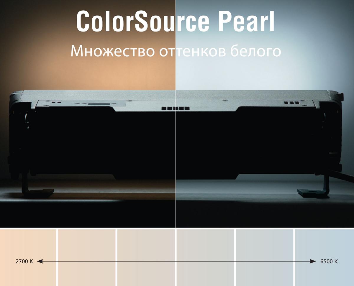 ColorSource Pearl – это светодиодный модуль настраиваемого белого света, который состоит из комбинации белых светодиодов. Модуль доступен для моделей светильников ColorSource Spot, Linear, PAR. В нем сочетаются два вида белых светодиодов, которые позволяют пользователю устанавливать любую цветовую температуру в диапазоне от 2700К до 6500K.