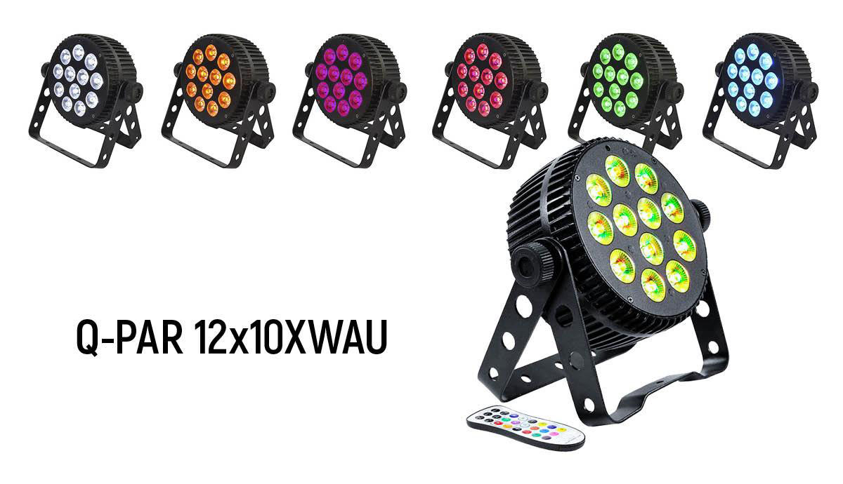 Q-PAR 12x10XWAU – более мощный и цветонасыщенный сценический LED PAR, также имеющий пониженный уровень шума. Источник света – 12 х 10 Вт RGBWAU-мультичипов.