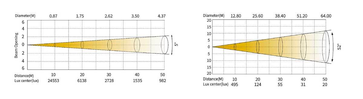 EIDOLON 800 использует источник света светодиод мощностью 600 Вт (6500K) с силой света 2 455 300 кд при минимальном зуме! Моторизированный линейный зум 5°- 52° для проецирования картинки на дальних дистанциях или широкоугольного эффекта с ближних.