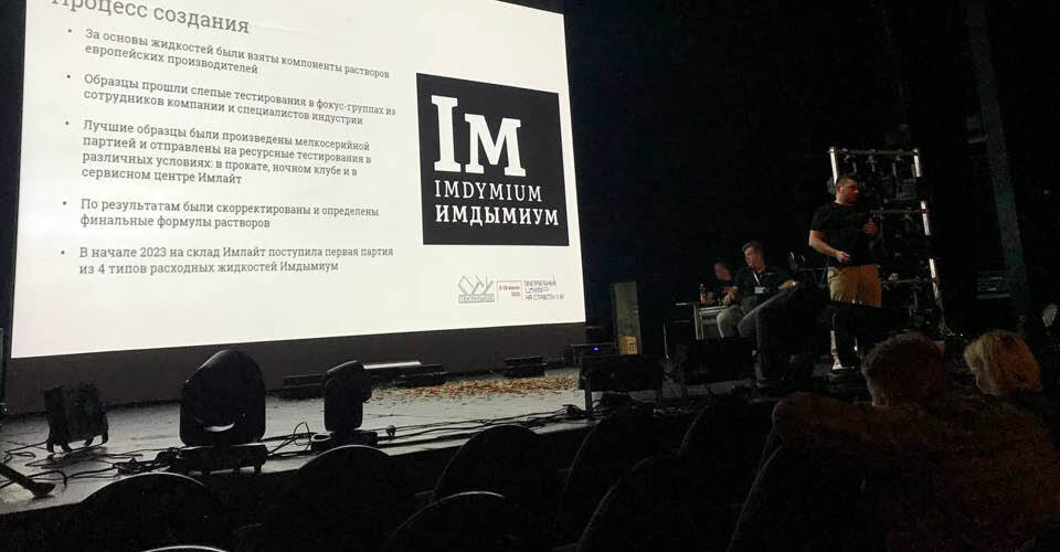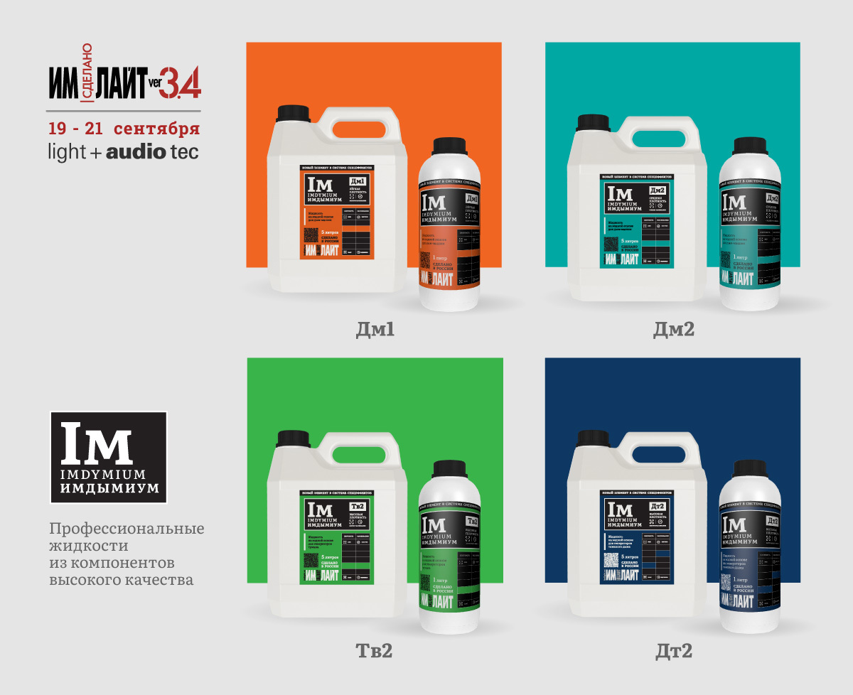 Год назад, на выставке Light + Audio Tec 2022, компания «Имлайт» анонсировала новое направление деятельности – производство специальных сценических эффектов. Первым шагом стало представление линейки расходных жидкостей для генераторов спецэффектов ИМДЫМИУМ. И представление было не только на словах, но и на деле. Все дни выставки на стендах «Имлайт» атмосфера для демонстрации возможностей светового оборудования была создана именно с помощью ИМДЫМИУМа.