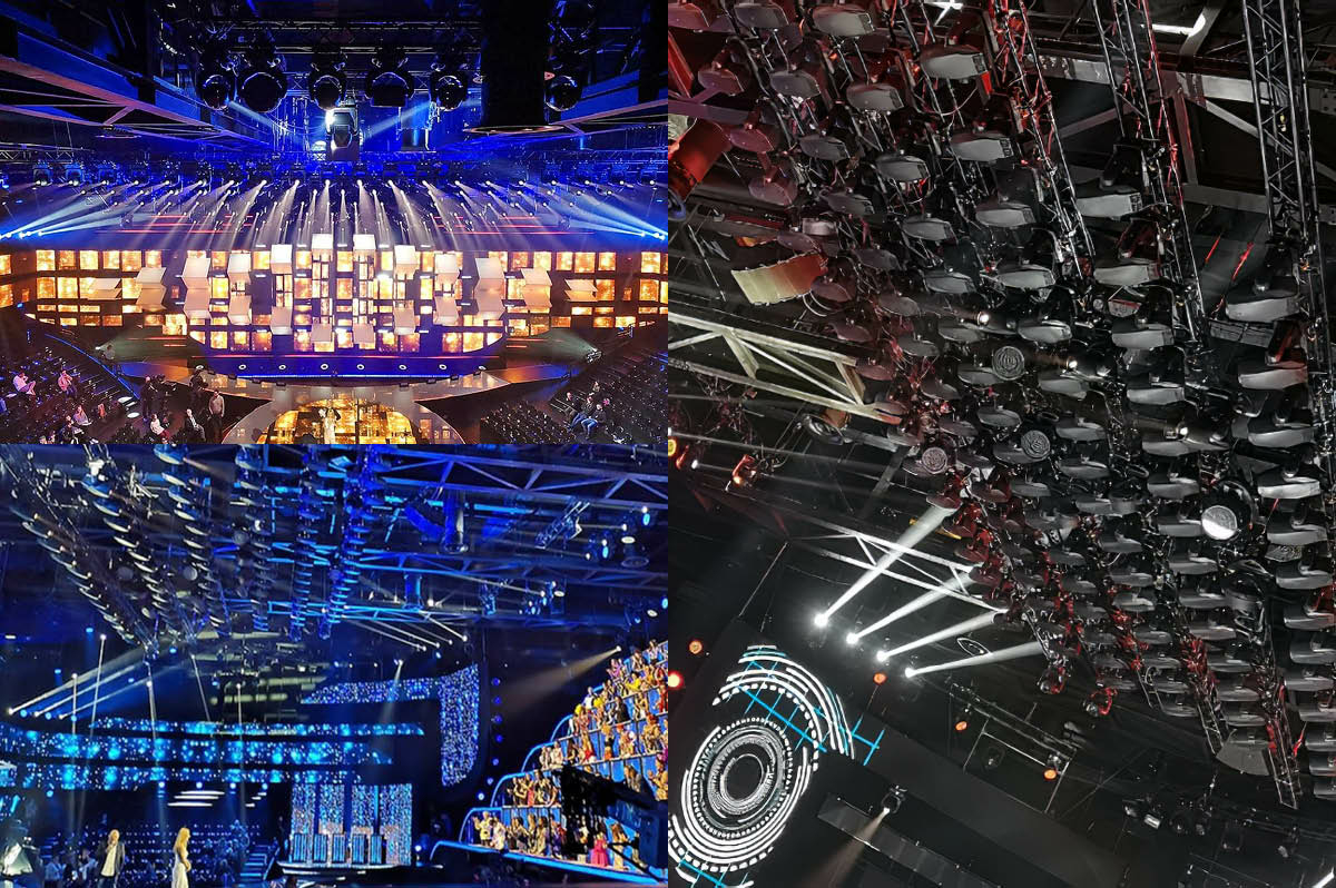 На фото 130 приборов SYNERGY 5 PROFILE освещают судей телевизионного проекта «Шоу талантов» на «Канале 5. Италия».