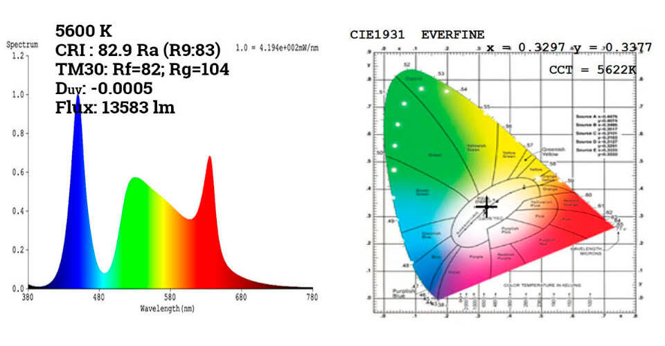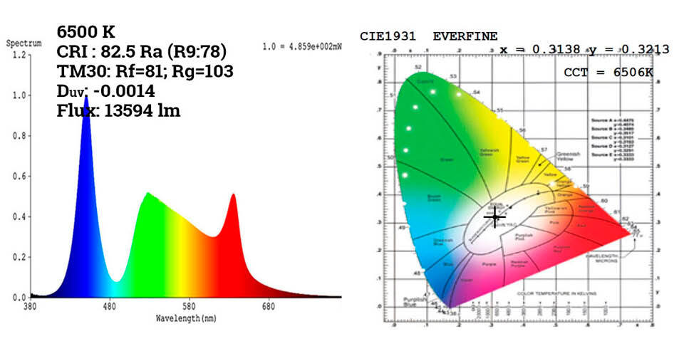 Данные NW10 спектрального анализа и карты CIE1931 для разных ССТ и ALL ON