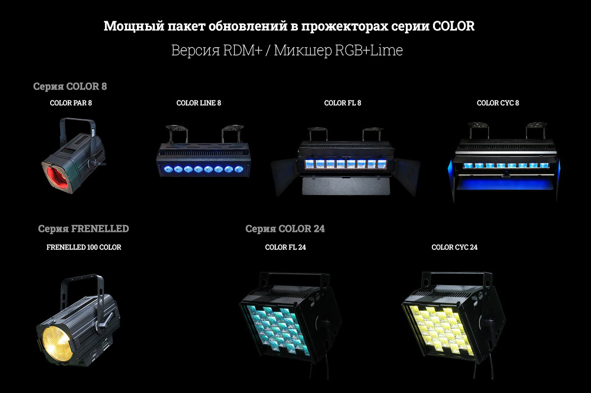 Кроме внедрения функции обратной связи RDM, в прожекторах серии COLOR новой версии есть: