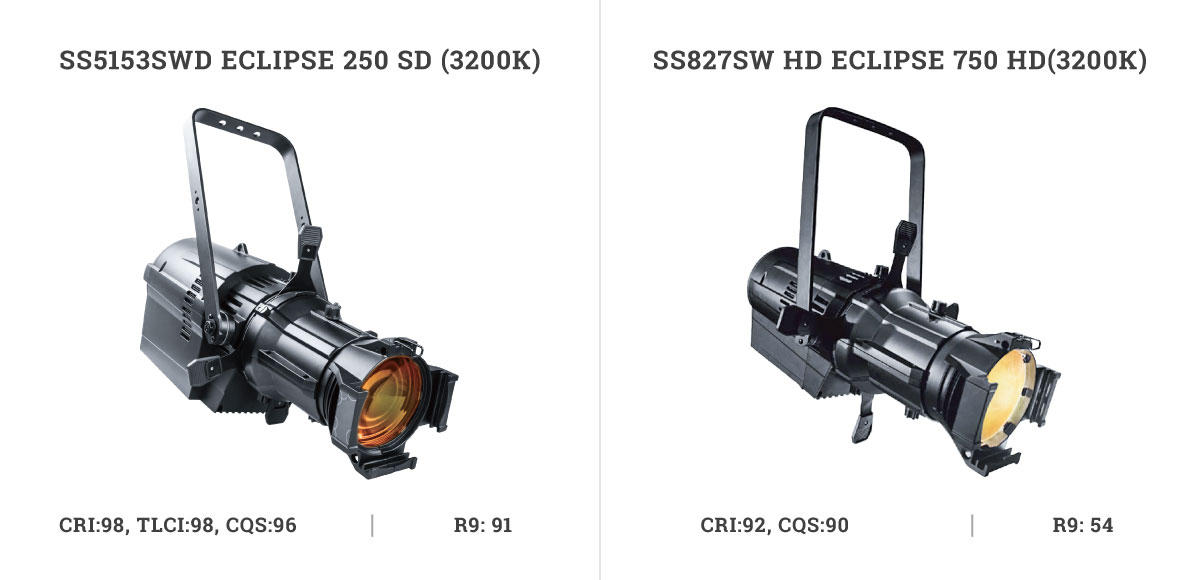 Продолжением качественных изменений в линейке «профильников» можно назвать новые ECLIPSE 250SD SS5153SWD и ECLIPSE 250SD SS5153SCD. Для новых моделей, в том числе и для Fresnel-прожекторов, Silver Star разработали специальные LED-модули с показателями CRI:98, TLCI:98, CQS:96 и очень высоким показателем R9.