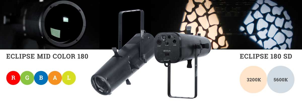 Некоторые новинки театрального сегмента были представлены уже в начале этого года, например, ECLIPSE MID COLOR 180. Это компактный и легкий 5-цветный, 150 Вт RGBAL профильный прожектор с диапазоном зума луча 25°–50°, освещенностью на 5 м 1098 и 647 люкс соответственно, равномерным смешиванием цветов, четким профилированием формы луча и с хорошей фокусировкой гобо. Оснащен интеллектуальной системой управления цветом CCS3.0 для обеспечения согласованности цветов, палитрой из 48 эмуляторов популярных фильтров ROSCO и LEE, 14 пресетами CCT от 1800 до 10000K с высоким CRI> 93Ra.
