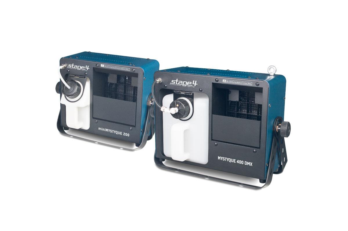 miniMYSTIQUE 200 и MYSTIQUE 400 DMX – это компактные, легкие экономичные устройства для использования в помещениях небольшого объёма. Приборы обладают полезной функцией автоматической самоочистки, а также регулировкой объёма производимого тумана от 1 до 100%, при этом на первичный нагрев требуется всего около минуты. Оба генератора комплектуются двойными лирами для подвеса или напольной установки, а для изменения угла рассеивания тумана предусмотрены шторки с возможностью регулировки до 90 градусов. Кроме того, MYSTYQUE 400 DMX обладает возможностью управления по протоколу DMX (режим на 1, 2 или 4 канала), имеется LCD-дисплей для легкой настройки параметров.