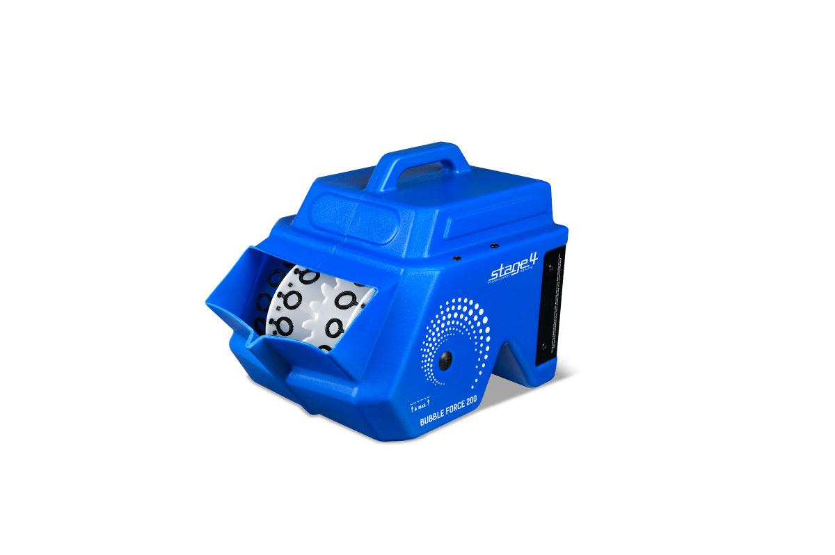 Звездой любого детского праздника станет генератор мыльных пузырей BUBBLE FORCE 200. Легкий и компактный прибор в ярком пластиковом корпусе с удобной ручкой для переноски в классической компоновке: пузыри формируются на вращающемся двойном барабане и с помощью двух осевых вентиляторов выдуваются в пространство. Для удобства управления используется радиопульт дистанционного управления с радиусом действия до 30 метров.