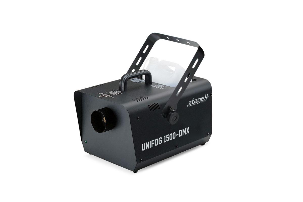 UNIFOG 1500-DMX – универсальный генератор дыма, применение которого будет целесообразно практически на любой сцене, ведь его максимальная производительность составляет 594 кубических метра в минуту. Несмотря на простоту внешнего вида, прибор оснащен множеством полезных функций: отключением нагревателя и помпы в случае низкого уровня жидкости в системе, автоматической поддержкой рабочей температуры, а сама жидкостная система сконструирована так, чтобы минимизировать риск засора. UNIFOG 1500-DMX оснащен LED дисплеем, таймером и DMX-модулем, для переноски предусмотрена удобная ручка, для подвеса монтажная лира, а для долгой работы без дозаправки – канистра объёмом 5 литров.