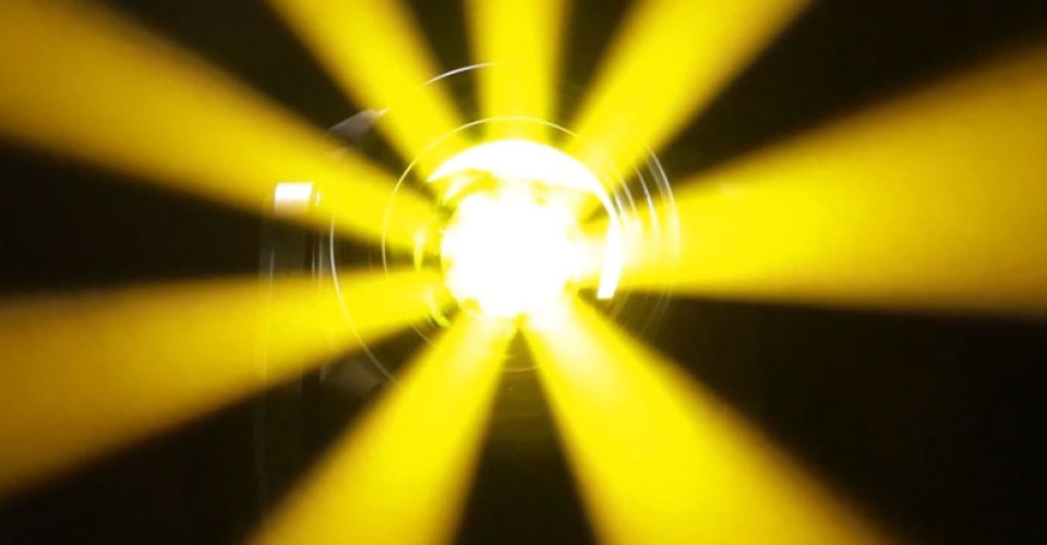 Центральный RGBW OSRAM LED мощностью 60 Вт выдает эффект калейдоскопа через 16-гранную поворотную призму, внешнее кольцо с SMD-светодиодами демонстрирует хорошо видимое светящее кольцо с набором встроенных эффектов.