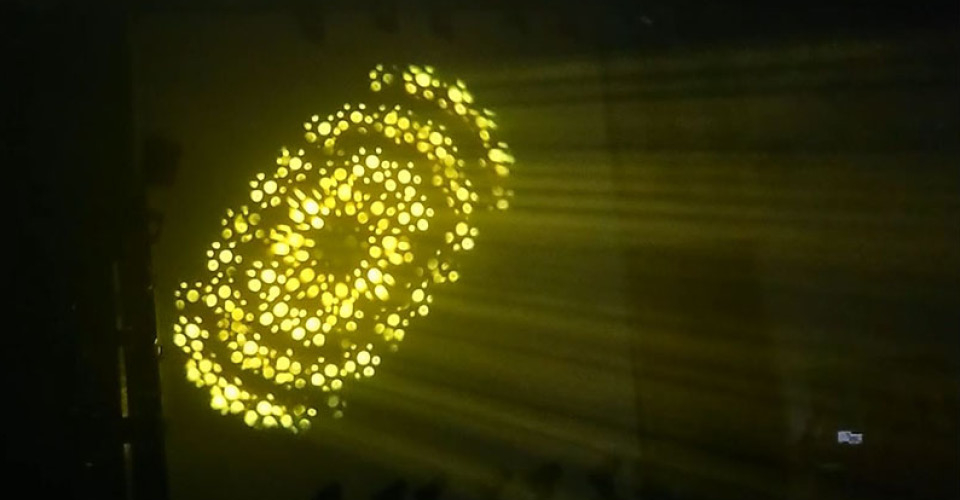 А имея электронный зум и фокус, 5-фасетную и линейную призмы с вращением в обоих направлениях и взаимным наложением, цветовое колесо из 6 дихроичных фильтров и CMY-синтезом цвета, лезвие линейной коррекции цветовой температуры СТО, 2 колеса гобо (7 roto + 8 static), ирисовую диафрагму 5-100% с macro-эффектами, колесо анимации, которое может создавать динамический эффект воды, огня и многие другие, мягкий фрост, можно получить большое количество высококачественных визуальных эффектов для мероприятия любого уровня и масштаба.