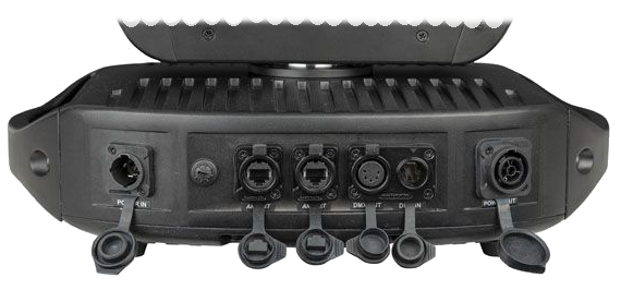 О надежности встроенных кабелей с гермовводами из нержавеющей стали мы рассуждать не будем. Хотелось бы чуть подробнее остановиться на разъемах Seetronic. «На борту» каждого «Нептуна» стоят силовые разъемы типа powerCON TRUE1, ставшие уже негласным стандартом для профессионального проката, 5-контактные XLR‑разъемы DMX in/out, 2 разъема etherCON link – все с защитными колпачками и со степенью защиты IP65! Это позволяет не переживать за стабильность электропитания и сигнала управления, даже если прибор ненадолго попадет в лужу. Дополнительно в каждом приборе стоит Ethernet-конвертер, что позволяет подвести к первому прибору в линии «витую пару», а последующие, и не только NEPTUNE, соединить в цепь DMX‑кабелями.