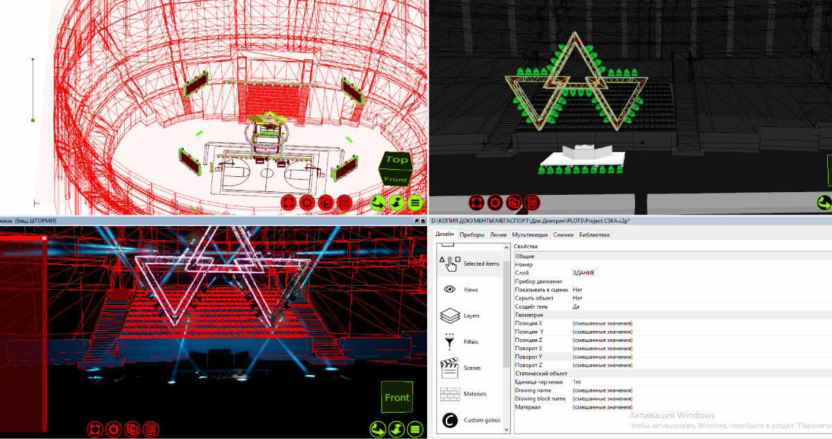 Программа дает возможность даже разыграть сценарий мероприятия, используя импортированные объекты и световое оборудование из готового коммерческого предложения.