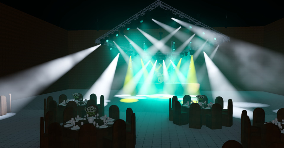 Конечно, одних световых приборов недостаточно, и для полноценной визуализации потребуются декорации, мебель, люди, ключевые несущие конструкции, к которым может осуществляться монтаж ферм или светового оборудования.