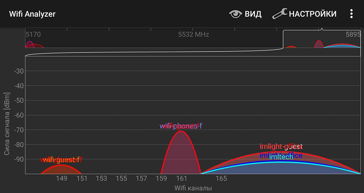 Загруженности радиосреды Wi-Fi-источниками в диапазоне 5,8 ГГц
