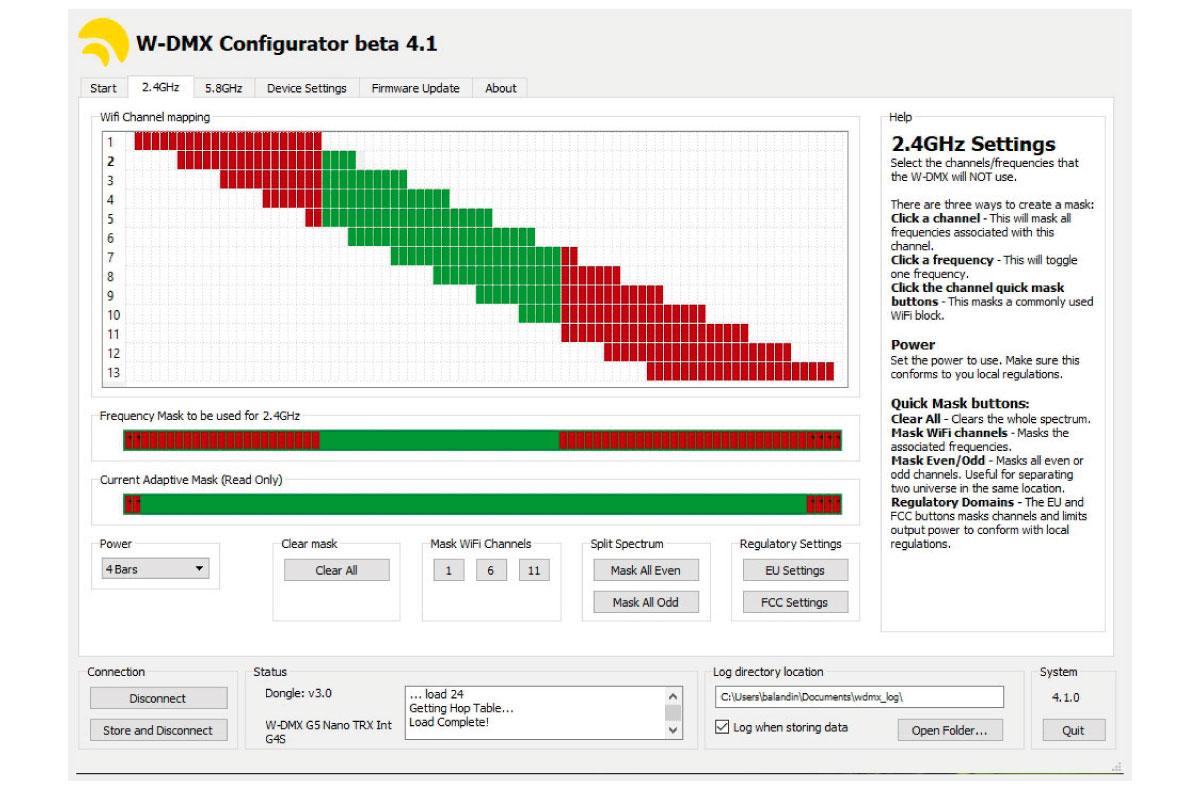 Для частичного или полного ухода от интерференционных помех шведская компания Wireless Solution рекомендует использовать программную маскировку каналов с высоким уровнем трафика или попросту фильтровать каналы, чрезмерно загруженные сторонними радиоприборами. В ассортименте Wireless Solution для этого используется устройство-программатор W-DMX™ Dongle и программное обеспечение W-DMX Configurator. С помощью этого программно-аппаратного комплекта можно не только создавать маску рабочих частот для устройств беспроводной передачи протокола DMX, но и осуществлять настройку других параметров и производить обновления обеспечения.