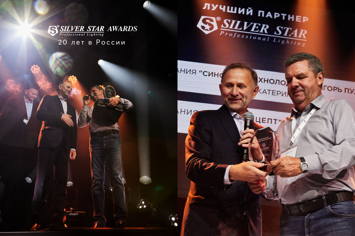 В рамках юбилейной программы мы подвели итоги 20-летней работы в регионах и назвали имена самых продуктивных, самых эффективных партнеров Silver Star, которые реализовали колоссальное количество проектов на оборудовании этого бренда. Памятные «звезды» победителям наш генеральный директор Андрей Пушкарев вручил на на Light + Audio Tec 2022.