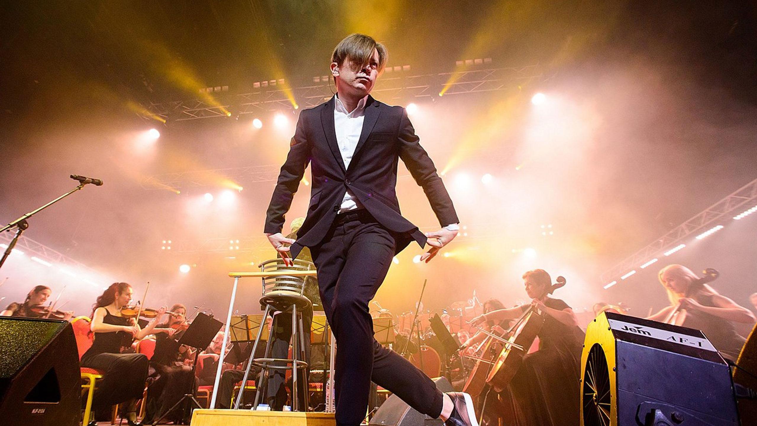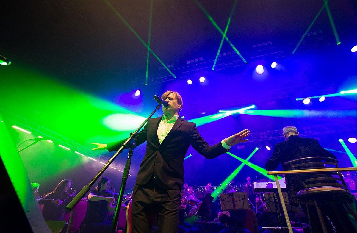 Шоу для оркестра — это пышная, яркая история с неторопливым повествованием. В рамках данной концертной программы я намеренно ограничиваю себя в визуальных средствах, не желая его переигрывать. В то же время, оркестровки некоторых песен, я поддерживаю диммерными эффектами. Подиумы обычно опоясывает массивная ферма, что является узнаваемым элементом и хорошим рОковым акцентом.
