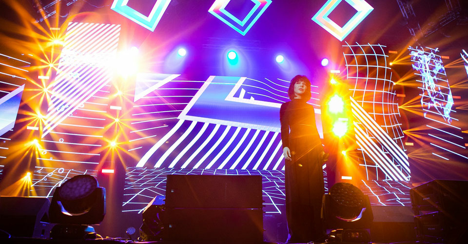 Для реализации художественной идеи нам потребовалось около 200 кв.м светодиодных экранов Mr.LED с шагом пикселя 5 мм. Центральный экран, 10 боковых экранов и 6 экранов в подвесе над сценой транслировали единый видеоконтент, меняющий тематику для каждого исполнителя, находившегося на сцене. Динамическая картинка, переходя из одного экрана в другой, придавала сценическому пространству объем. Два дополнительных крайних боковых экрана (размером 7 x 4 м) осуществляли live-трансляцию шоу для зрителей, находившихся на трибунах.