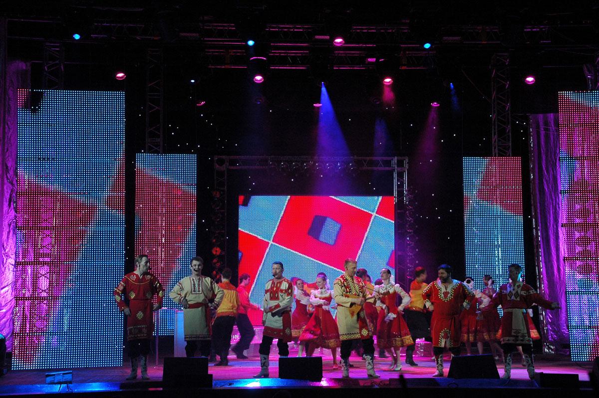 | Спецификация оборудования | Световое оборудование Система управления светом – SGM (Италия), IMLIGHT (Россия) Интеллектуальный управляемый свет – DTS, SGM (Италия) Световые эффекты - DTS (Италия), IMLIGHT (Россия) Генераторы спецэффектов – SGM (Италия) Световые пушки – SGM (Италия) Силовое оборудование – IMLIGHT (Россия) Коммутационное оборудование – Prospecta (Италия), Roxtone (Китай) Светодиодный экран (сетка) – Mr.LED (Китай) Звуковое оборудование Портальные акустические системы X-Treme (Италия), серия Classic Line (4 полосы) – 10 кВт Сценические мониторы и сценические прострелы – X-Treme (Италия) Усилители мощности – X-Treme (Италия) Приборы обработки звука - Klark Teknik (Великобритания), dbx (США), t.c.electronic (Дания) Микрофонные радиосистемы – Sennheiser Evolution 300 (Германия) Сценический комплекс Алюминиевые конструкции – IMLIGHT (Россия) Дополнительное оборудование Комплект защитных кабельных лотков Комплект носимых радиостанций Комплект индивидуальных транспортировочных кейсов |