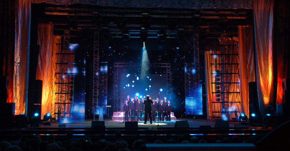 | Команда проекта | Направление «Звуковое оборудование», «Видео» – Пономарев Константин, Грибанов Игорь Направление «Сценический комплекс», «Свет» – Сабреков Ренат Монтажные и пусконаладочные работы – Мошонкин Андрей, Пислегин Алексей |