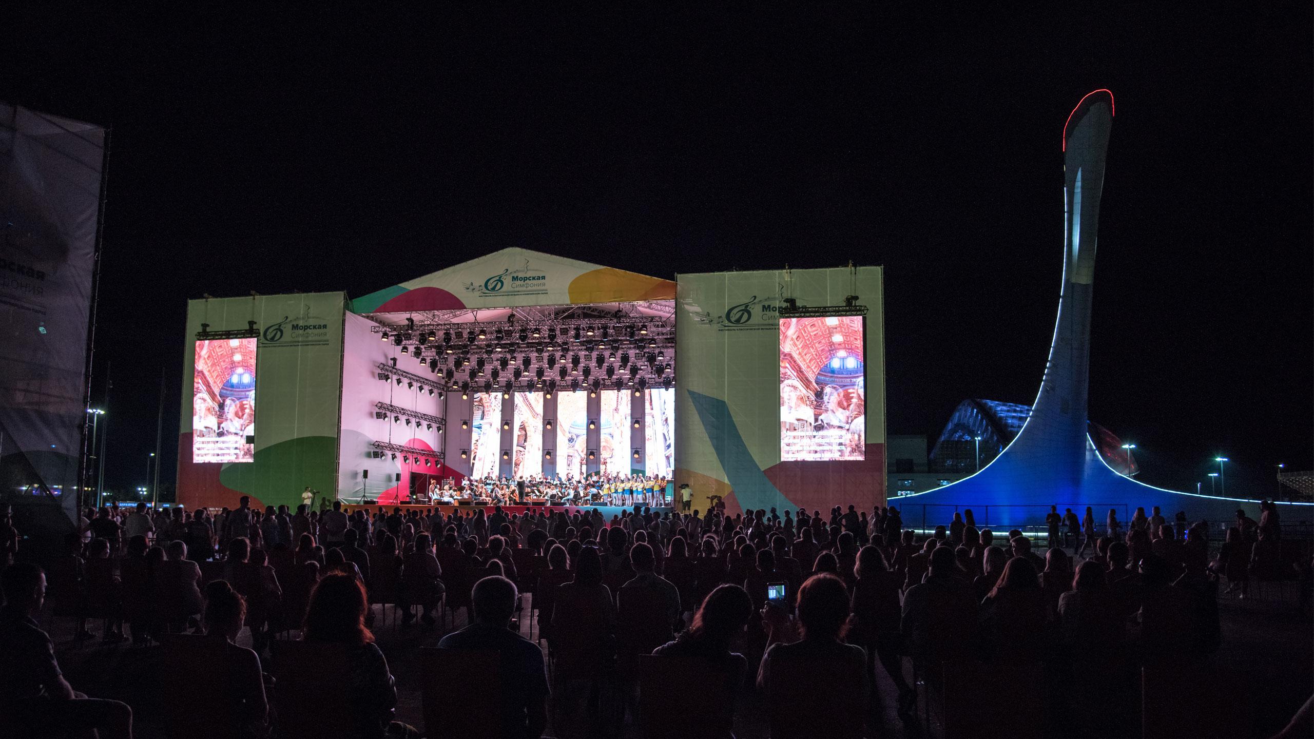 На карте open-air фестивалей классической музыки появилась еще одна знаковая точка – город Сочи. Здесь стартовала «Морская симфония» – уникальный музыкальный проект образовательного центра «Сириус». Отметим, что сотрудничество прокатного департамента компании «Имлайт» с центром «Сириус» началось в прошлом году: три летних месяца 2017 года наша команда обеспечивала техническую поддержку проекта «Музыкальное соцветие». В этом году прокатная бригада компании «Имлайт» вновь работала с ведущими коллективами и звездами мировой симфонической и оперной сцены, но уже в Олимпийском парке, отвечая за техническое оснащение всей площадки.