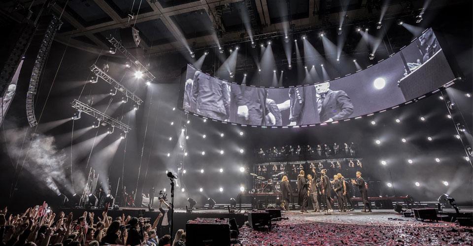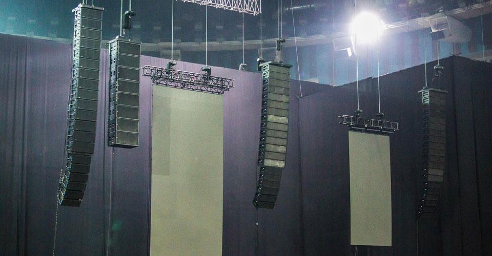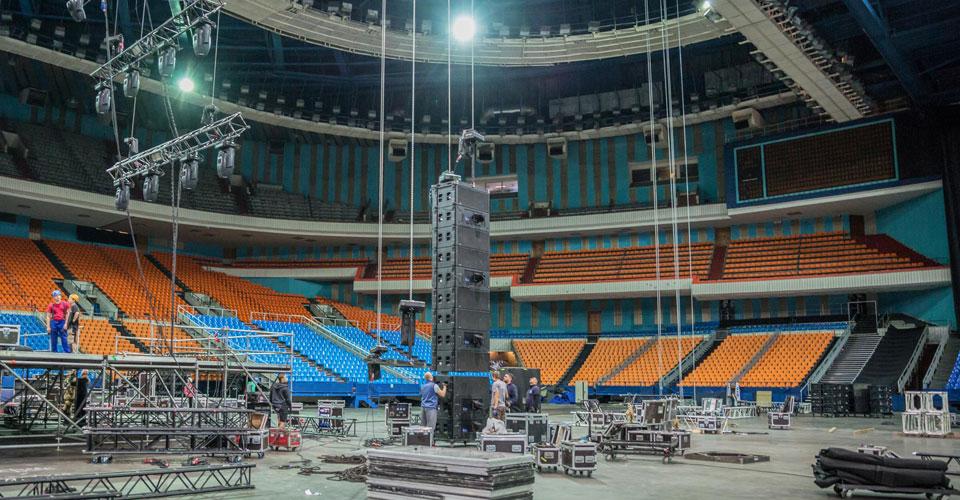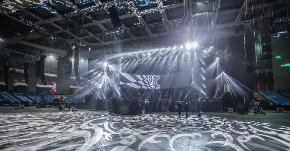 Специально для московского выступления ввиду значительной величины площадки был существенно доработан технический райдер – следуя основному принципу масштабируемости, все составляющие шоу против обыкновения были не уменьшены, а увеличены в масштабе: больше света, больше спецэффектов, больше боковых экранов (по три с каждой стороны). За два дня, предшествовавших концерту, 150 специалистов установили и отстроили в «Олимпийском» более 100 тонн оборудования, в том числе 440 акустических систем Meyer Sound общей мощностью 1000 кВт, сотни световых приборов и, конечно же, ставший уже легендарным центральный 25 метровый светодиодный экран на управляемых лебедках, который вращается, поднимается и меняет угол наклона.