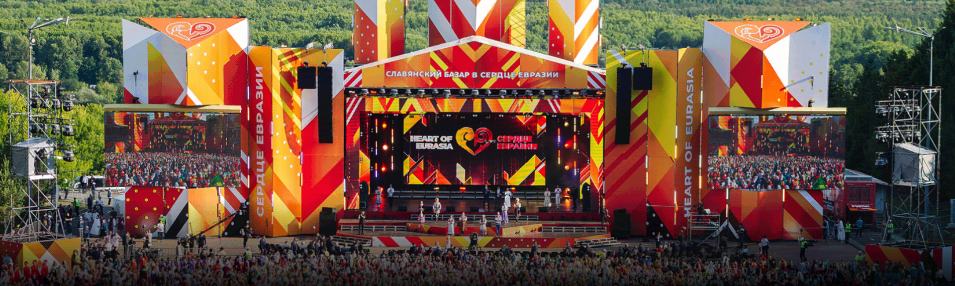 В этом году сцена «Сердца Евразии», в сравнении с предыдущими годами, выросла в габаритах (ширина - 50 м, высота - 24 м, глубина - 20 м), приобрела новый объем, а в геометрии появились фигуры с логотипами фестиваля, создающими визуальный образ сердца. Также сценический комплекс был дополнен увеличенной площадью боковых LED-экранов. Специалисты IMLIGHT SHOW PRODUCTION обновили и акустическую концепцию площадки: для Хоровода дружбы часть зрительной зоны освободили от пультовой и башен с выносным светом. За фестивальный звук отвечал комплект оборудования Meyer Sound.