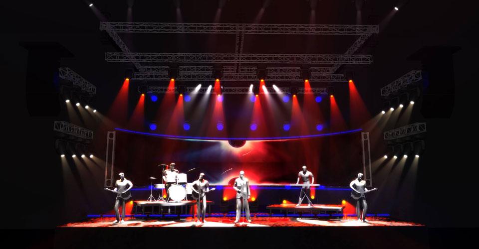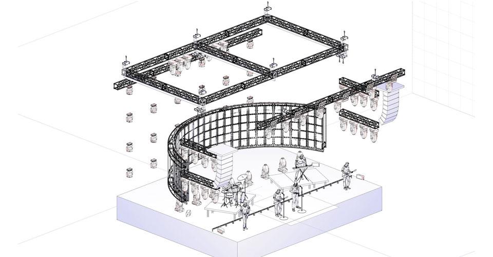 На этапе проектирования и производства механики и систем управления для шоу «Горизонт событий» в работу включились специалисты почти всех отделов и подразделений компании «Имлайт». Нам необходимо было получить металлическую конструкцию, которая одновременно бы отвечала сразу нескольким требованиям. В первую очередь, эта рама должна обеспечивать прочность и жесткость светодиодной декорации, но при этом ее не должно быть видно. Кроме того, конструкция должна быть легкой, удобной в транспортировке и пригодной для использования на сценах любой величины.