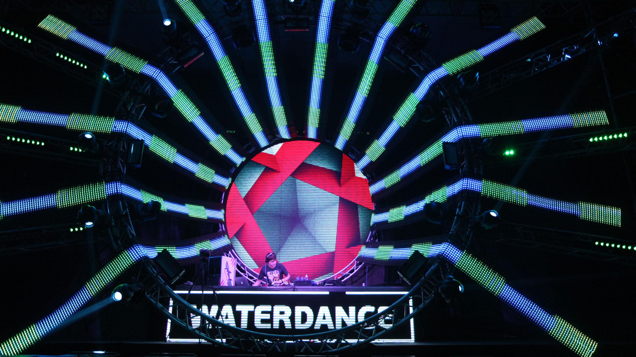 В ночь с 8 на 9 августа на набережной Гребного канала погружённого в ночную дремоту Нижнего Новгорода появился диковинный пульсирующий цветок света и ритма, ознаменовав собой начало традиционного клубного фестиваля Waterdance.