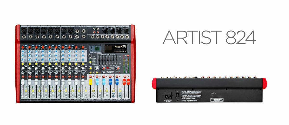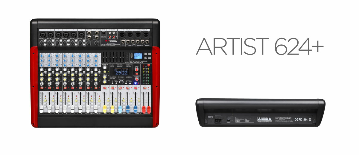 Все модели ARTIST оснащены цифровыми 24-битными процессорами эффектов, а модели 624+ и 1224+ имеют в конструкции сразу 2 процессора. Эти же модели могут использоваться в качестве внешней звуковой платы, так как оснащены аудиоинтерфейсами.
