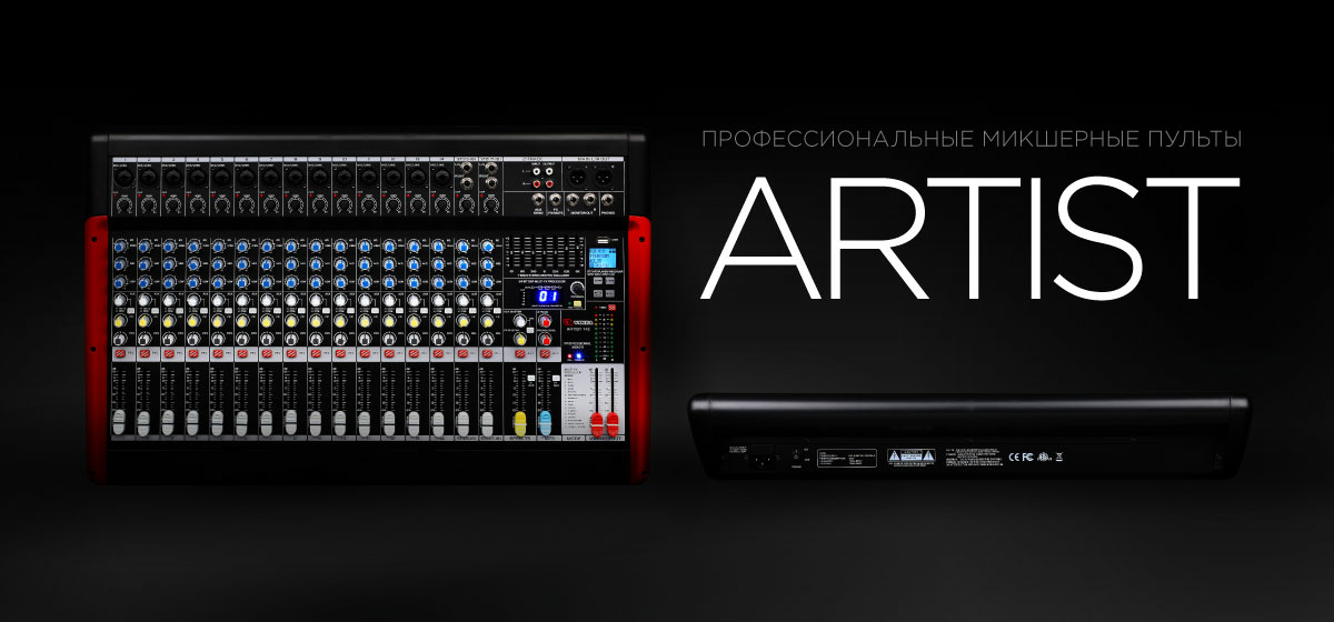 Микшеры ARTIST имеют достаточно развитую систему внешней коммутации, но наряду с этим являются вполне самодостаточными устройствами, которые в большинстве случаев могут использоваться в составе звукового комплекта без использования внешних приборов обработки сигнала.