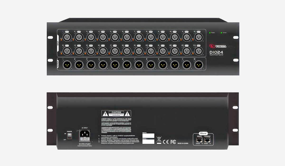 Итак, сценическая коробка входов-выходов цифрового мультикора VOLTA DIO24 доступна для приобретения и эксплуатации. Новый Stage Box обладает 24 аналоговыми входами с микрофонными предусилителями с фантомным питанием и 12 выходными каналами. Внутри прибора расположены АЦП/ЦАП с динамикой – 91dBu/114dB с глубиной квантования 32 бит (процессор 32 бит с плавающей запятой).
